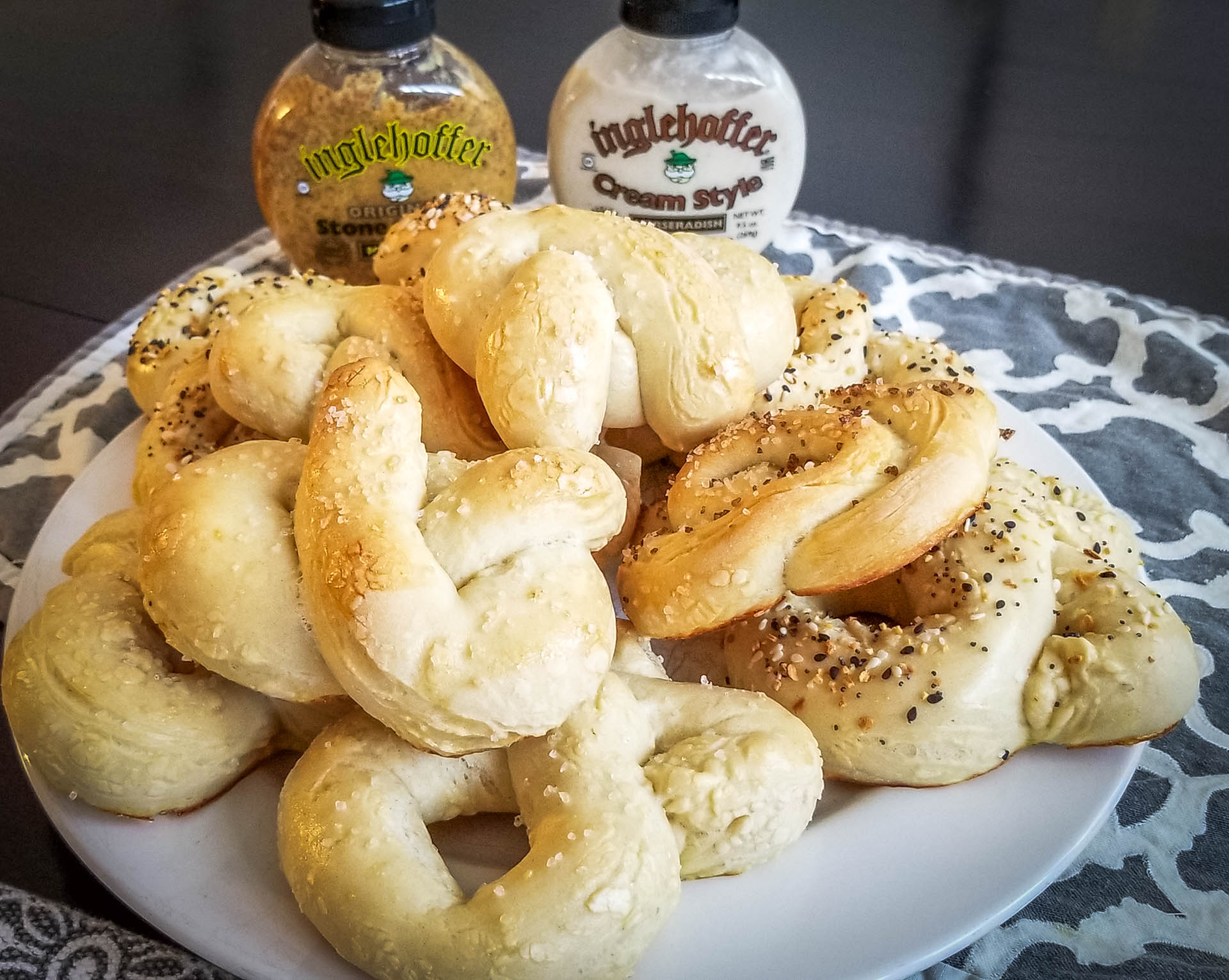 Well, sadly we can’t go to Disney right now. We are looking for fun ways to try something new. We found a copycat recipe for Disney’s Biergarten Soft Pretzels. We have never made pretzels before but they were super easy! We will definitely make them again. We also switched up the recipe a bit and made a few with Trader Joe’s Everything Bagel topping. They were soooo yummy.