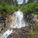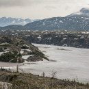 We traveled a short distance up the White Pass Trail headed to the Klondike in a manner that would have made us the envy of even the most recent gold rush – in a twenty passenger van. Like most of the posts about Alaska, nothing I can type can equal the pictures and sadly the pictures don’t show how amazing the views are from the Klondike Highway. We passed border patrol and entered Canada for a couple of miles.